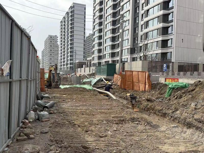 围挡内部,施工人员和设备已经进场,正在进行管道的改造